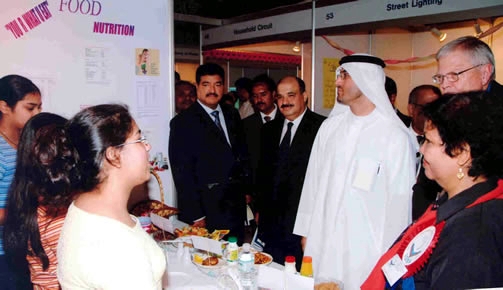 |   Dr B R Shetty visiting one of the Demonstration Stalls