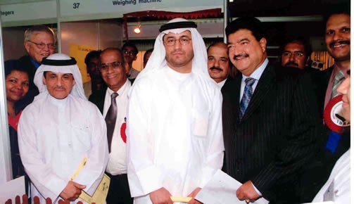 |   H.E. Majid Al Mansouri, Dr. B.R. Shetty and Dr. Saleh Al Masabi at the Stalls